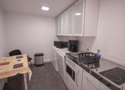 Eine kleine Küchenzeile mit Kaffee- und Teemöglichkeiten sowie allen notwendigen Küchenutensilien rundet das Angebot ab.